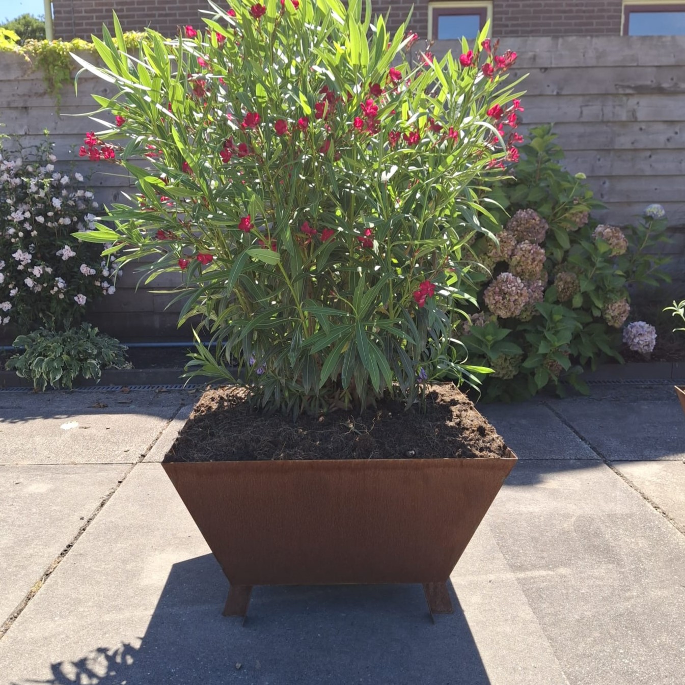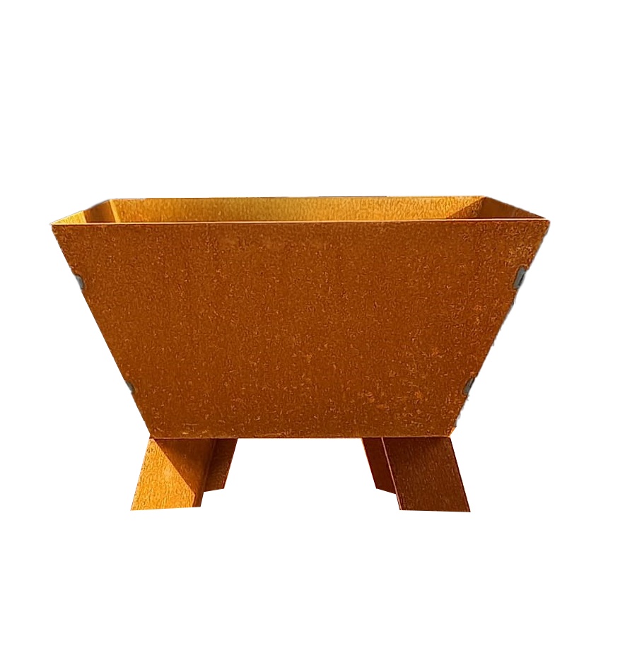 Alle bakken hebben bij ons al een tijd buiten gestaan, en zijn dus al geroest. Dit geeft direct het gewenste resultaat van de uitstraling van cortenstaal.